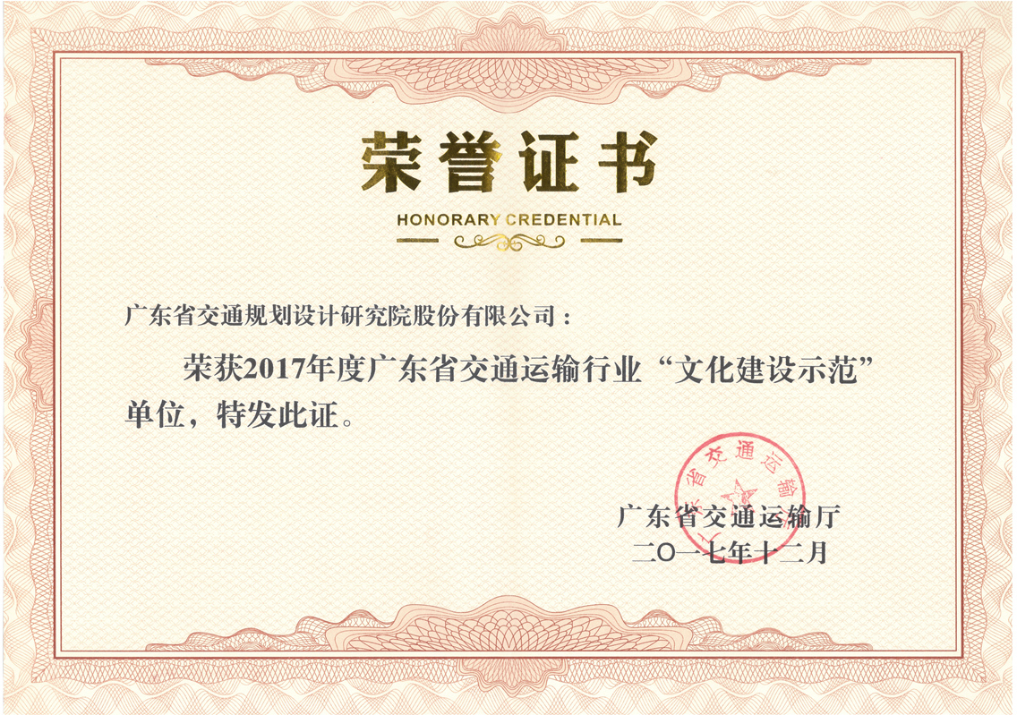 廣東省交通運(yùn)輸行業(yè)“文化建設(shè)示范”單位