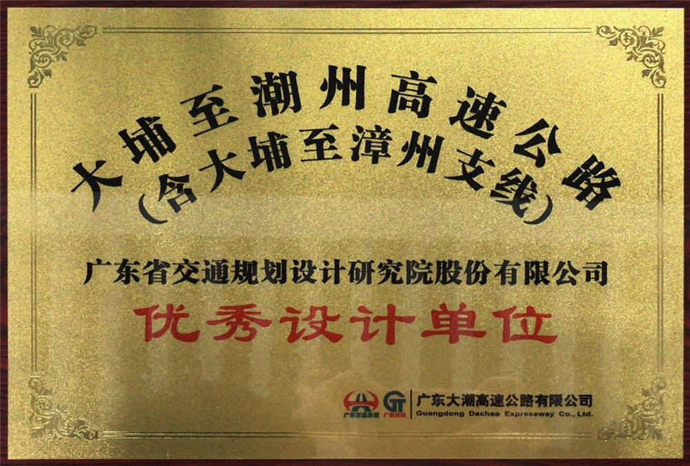 近日,我公司因在大埔至潮州高速公路(含大埔至漳州支線)項(xiàng)目勘察設(shè)計(jì)與后續(xù)服務(wù)工作中表現(xiàn)優(yōu)異、貢獻(xiàn)突出,受到大潮高速公路業(yè)主單位表彰,并被授予“優(yōu)秀設(shè)計(jì)單位”榮譽(yù)稱號(hào)。