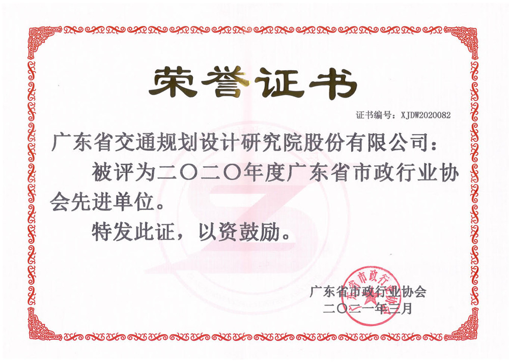 近日,我公司被廣東省市政行業(yè)協(xié)會評為“2020年度廣東省市政行業(yè)協(xié)會先進單位”。