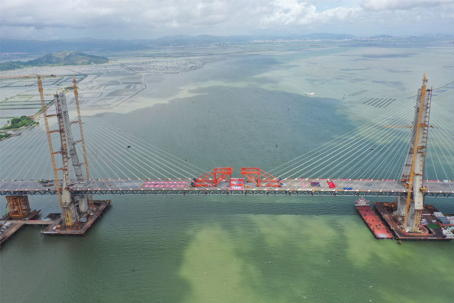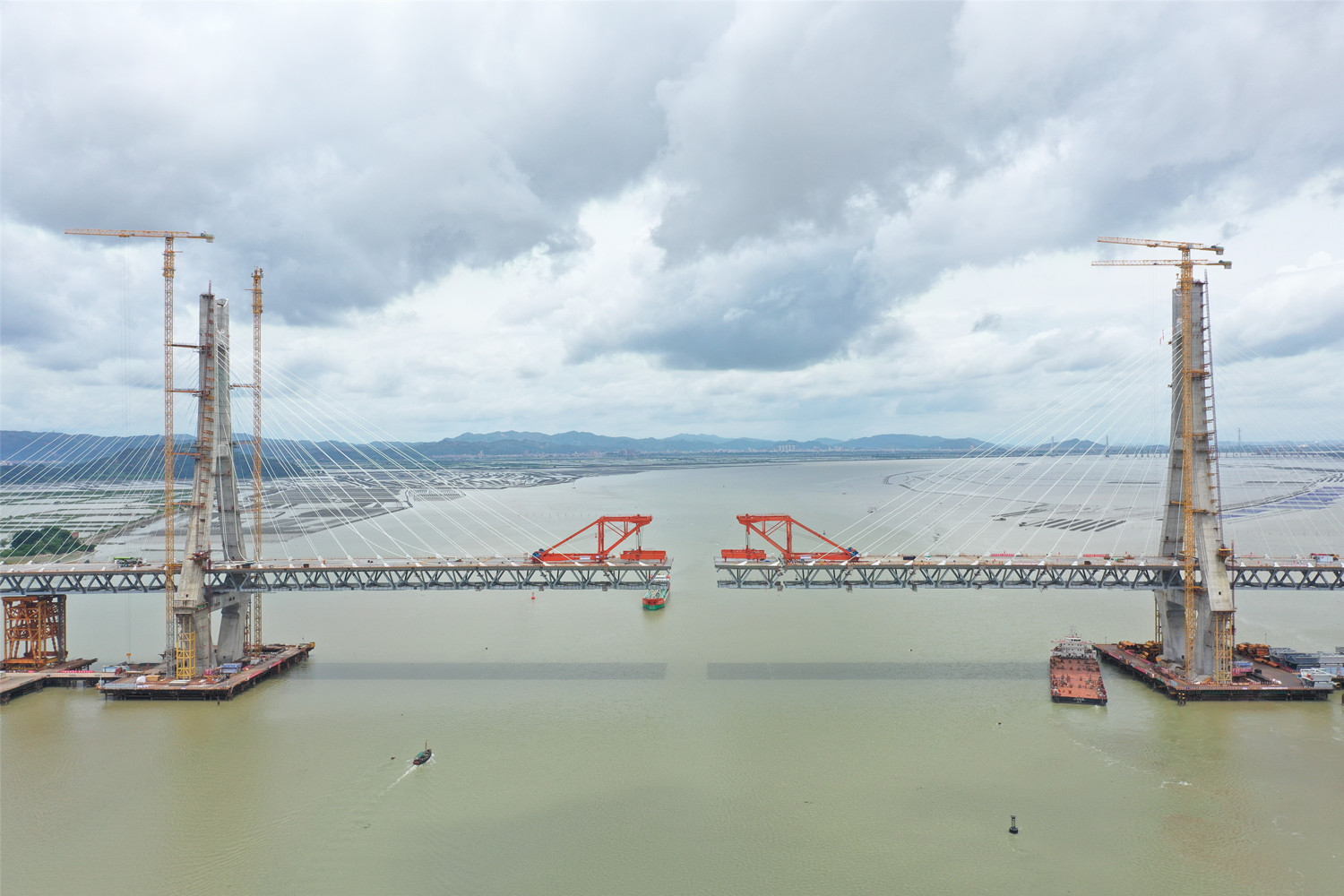 6月30日上午10時08分,合龍總指揮一聲令下,隨著最后一節(jié)鋼桁梁與兩邊鋼桁梁的精準連接,牛田洋特大橋成功合龍。