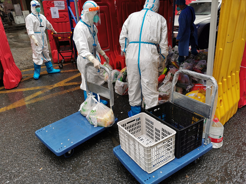 此次疫情來勢洶洶,我與同事在第一時間作為抗疫青年志愿者前往白云區(qū)支援抗疫一線。我主要負(fù)責(zé)黃石街道石崗村管控區(qū)內(nèi)居民生活物資的配送、規(guī)勸區(qū)域內(nèi)游走居民回家以及進(jìn)出網(wǎng)格人員的消殺任務(wù)。經(jīng)過抗疫隊伍十多天的共同奮戰(zhàn)后,黃石街疫情終于有所緩解,風(fēng)險等級降低。通過這次抗疫志愿服務(wù),我真切地體會到了一線抗疫人員的辛苦。向每位一線人員致敬!我相信,在黨和政府的領(lǐng)導(dǎo)下,我們一定能夠戰(zhàn)勝疫情共克時艱!