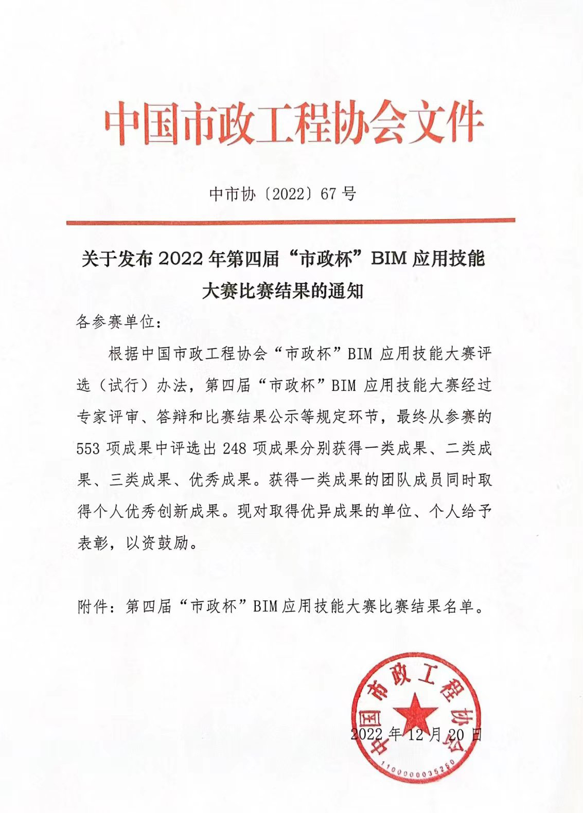 “市政杯”BIM應(yīng)用技能大賽由中國市政工程協(xié)會主辦,旨在充分發(fā)揮BIM技術(shù)在市政工程建設(shè)和行業(yè)發(fā)展中的創(chuàng)新驅(qū)動作用,推動BIM技術(shù)在市政工程建設(shè)中的廣泛應(yīng)用,搭建市政BIM技術(shù)成果共享平臺,促進(jìn)企業(yè)信息化水平的不斷提高。該獎項(xiàng)為中國市政行業(yè)BIM最高獎項(xiàng)。