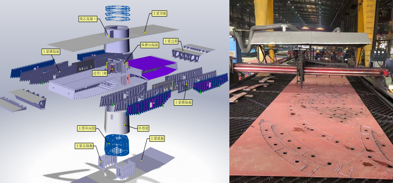 根據(jù)項(xiàng)目特點(diǎn),集團(tuán)依托EPC設(shè)計(jì)施工總承包模式,進(jìn)行了復(fù)雜橋梁正向設(shè)計(jì)與數(shù)字化建造的創(chuàng)新實(shí)踐。創(chuàng)新性的橋梁正向設(shè)計(jì)技術(shù)體系框架以及自主開發(fā)的扁平式鋼箱梁專家系統(tǒng)實(shí)現(xiàn)了復(fù)雜鋼結(jié)構(gòu)設(shè)計(jì)過程數(shù)字化,利用設(shè)計(jì)數(shù)據(jù)實(shí)現(xiàn)二維圖紙與三維模型“共源”的技術(shù)創(chuàng)新成果,實(shí)踐了正向設(shè)計(jì)理念,拓展了鋼結(jié)構(gòu)數(shù)字化技術(shù)應(yīng)用的深度和廣度。