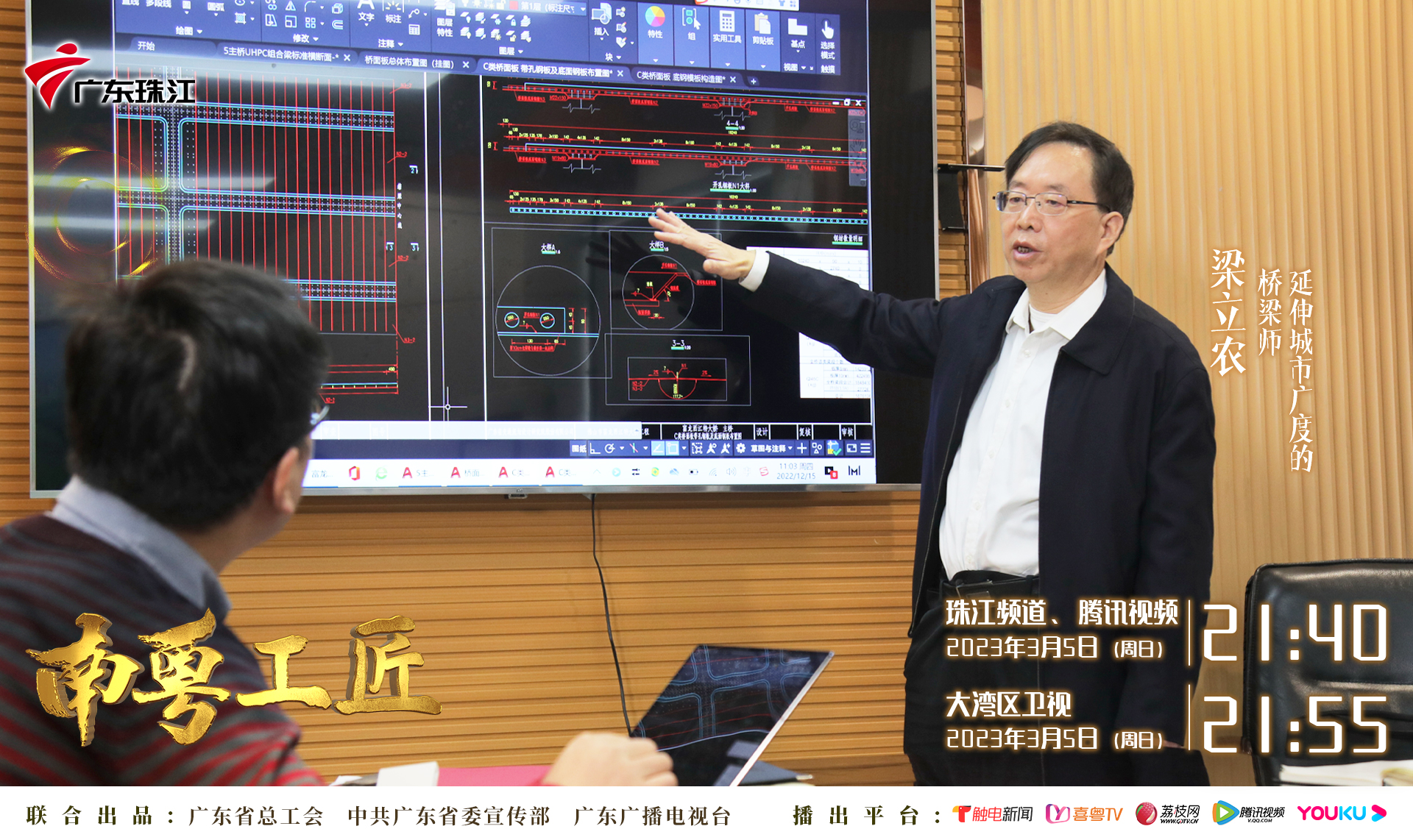 廣東省交通規(guī)劃設(shè)計(jì)研究院集團(tuán)股份有限公司首席專家、全國十大橋梁人物、廣東省工程勘察設(shè)計(jì)大師、中國公路學(xué)會(huì)優(yōu)秀科技工作者、全國公路優(yōu)秀勘察設(shè)計(jì)師、廣東省五一勞動(dòng)獎(jiǎng)?wù)?、“南粵工匠”梁立農(nóng)的個(gè)人專題紀(jì)錄片《南粵工匠——延伸城市廣度的橋梁師》于2023年3月6日在珠江頻道、大灣區(qū)衛(wèi)視以及騰訊視頻、優(yōu)酷、喜粵TV、廣州地鐵電視等新媒體平臺(tái)與觀眾見面。