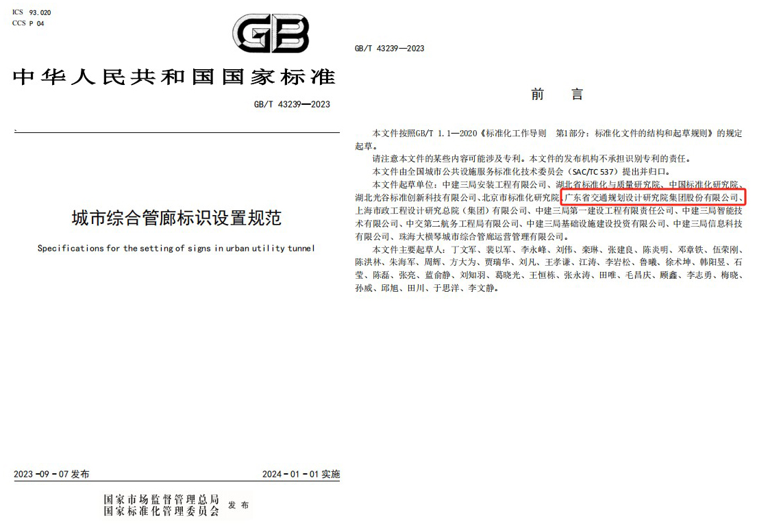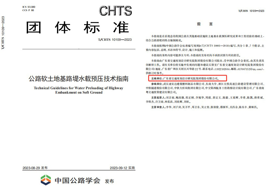 近日,公司參編的國家標準《城市綜合管廊標識設置規(guī)范》(GB/T 43239—2023)以及主編的中國公路學會團體標準《公路軟土地基路堤水載預壓技術指南》(T/CHTS10109—2023)兩項標準成果正式發(fā)布。