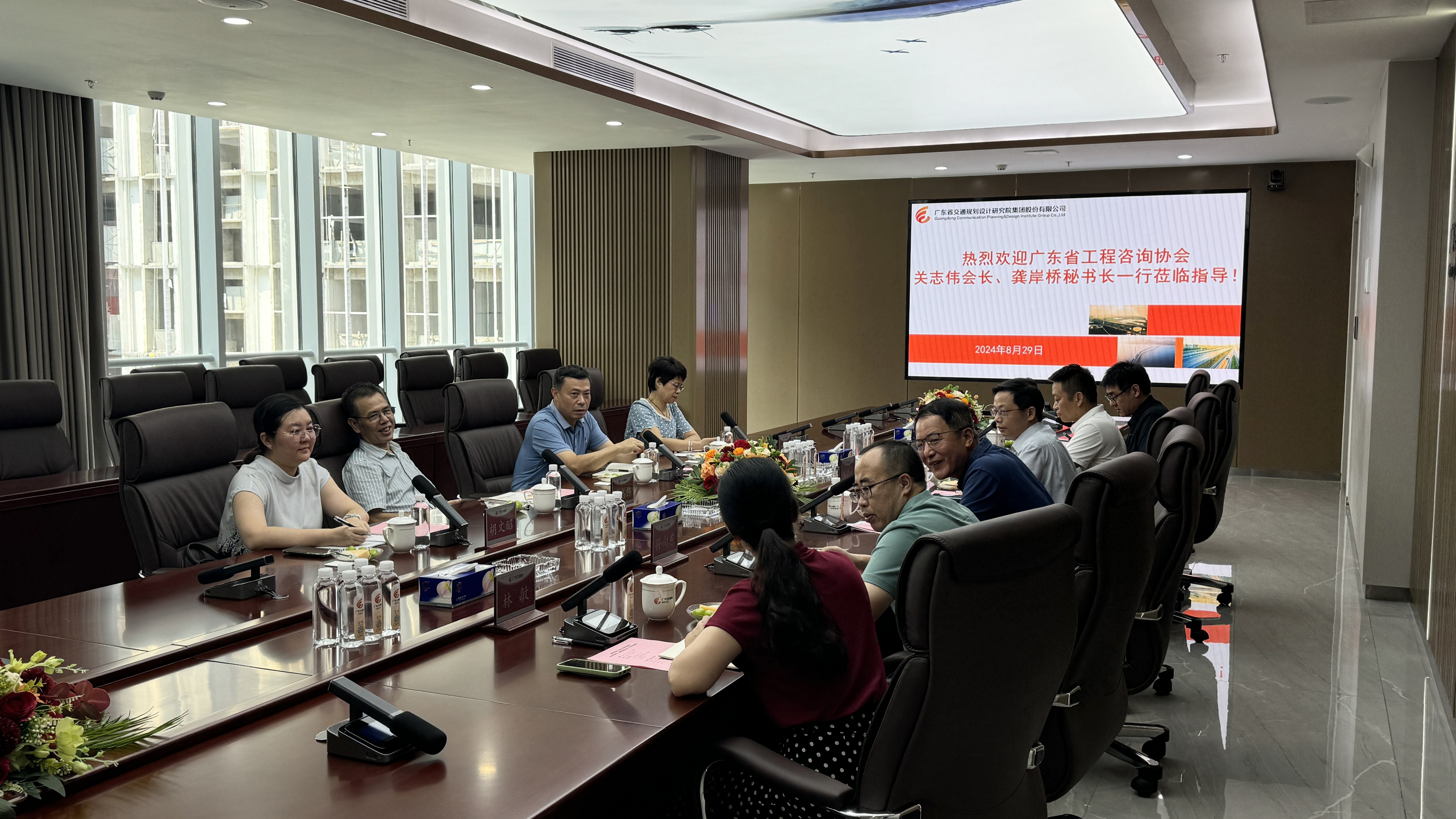 8月29日,廣東省工程咨詢協(xié)會(huì)會(huì)長關(guān)志偉、秘書長龔岸橋一行蒞臨公司座談交流。公司董事長李江山,副總經(jīng)理陳賢文,總工程師孫向東,總經(jīng)理助理、九域公司總經(jīng)理朱青,市場發(fā)展部主任鄔曉輝,科技質(zhì)量部主任林敏參加了交流會(huì)。