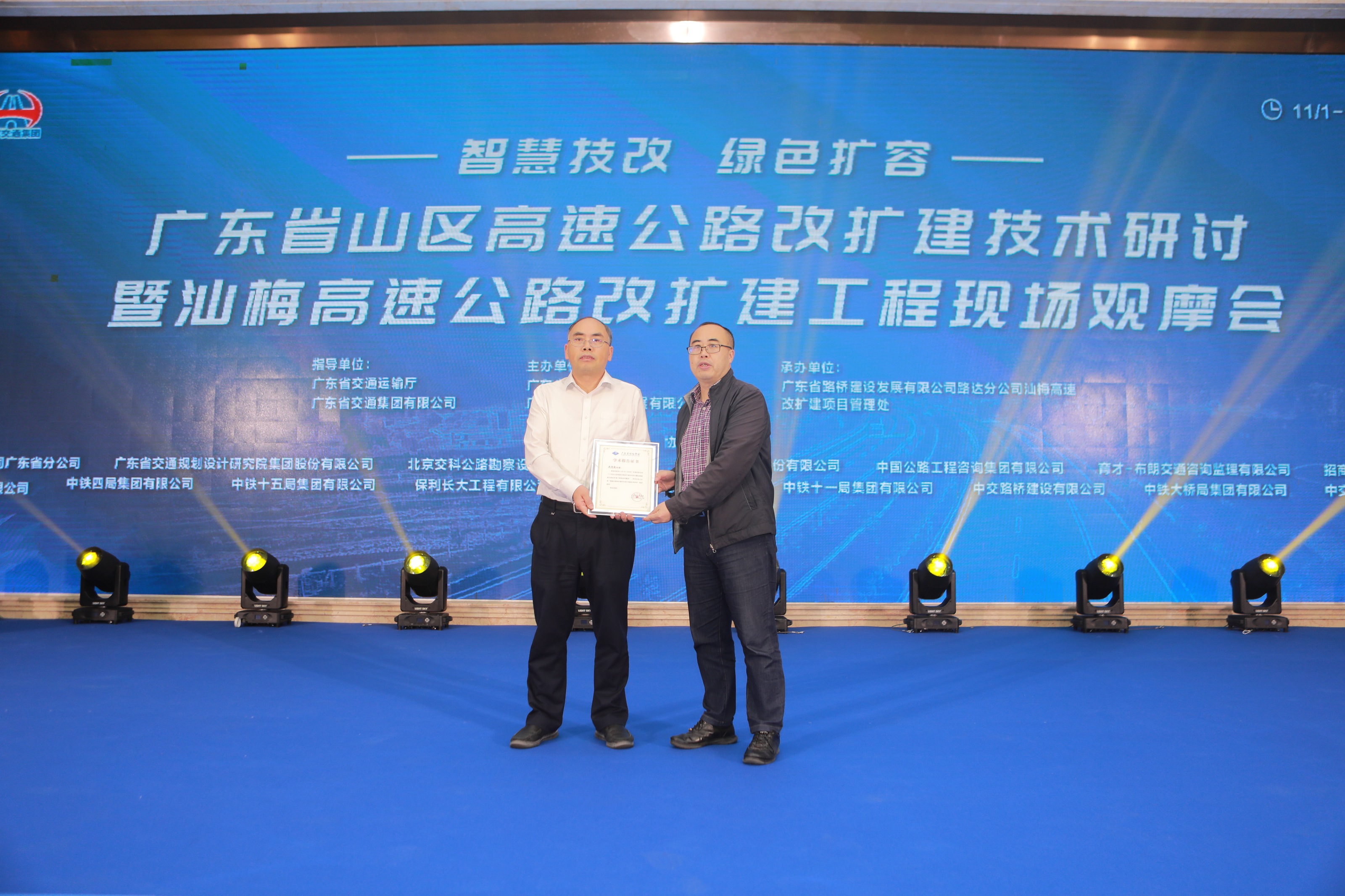 11月1日至2日,由廣東省公路學(xué)會(huì)和廣東省路橋建設(shè)發(fā)展有限公司聯(lián)合主辦、我公司協(xié)辦的“廣東省山區(qū)高速公路改擴(kuò)建技術(shù)研討暨汕梅高速公路改擴(kuò)建工程現(xiàn)場(chǎng)觀摩會(huì)”在梅州順利召開(kāi)。廣東省交通運(yùn)輸廳賈紹明副廳長(zhǎng)、梅州市人民政府陳亮副市長(zhǎng)以及全國(guó)部分省交通運(yùn)輸廳領(lǐng)導(dǎo)出席了會(huì)議。公司總工程師孫向東、副總工程師梁志勇,第二設(shè)計(jì)院總工程師王雷等人參會(huì)。來(lái)自全國(guó)各地交通行業(yè)的多名業(yè)界代表齊聚一堂,以汕梅高速改擴(kuò)建項(xiàng)目為背景,通過(guò)學(xué)術(shù)交流、展覽的方式,共同促進(jìn)山區(qū)高速公路改擴(kuò)建理念的提升及創(chuàng)新技術(shù)的推廣應(yīng)用。