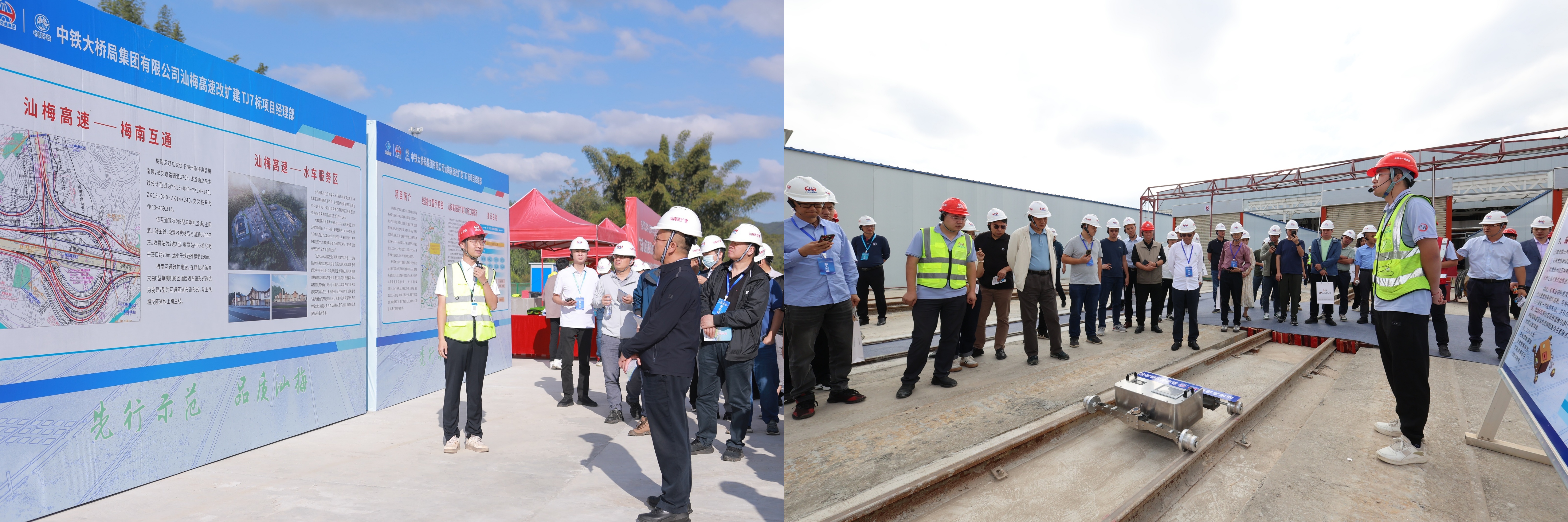 11月2日上午,與會(huì)代表們前往汕梅高速公路改擴(kuò)建工程現(xiàn)場(chǎng),分別觀摩考察了TJ7標(biāo)煤系地層邊坡、TJ4標(biāo)清潭特大橋及蓮花山隧道、TJ5標(biāo)智慧梁場(chǎng)等多個(gè)現(xiàn)場(chǎng)工點(diǎn),進(jìn)一步了解項(xiàng)目技術(shù)的創(chuàng)新點(diǎn)和先進(jìn)經(jīng)驗(yàn)。