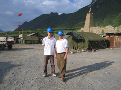 根據(jù)工作安排,援建隊(duì)原計(jì)劃于7月14日趕赴汶川,后提前至7月7日,在接到提前趕赴汶川的通知后,我司三名技術(shù)人員二話(huà)沒(méi)說(shuō),立即對(duì)手頭工作進(jìn)行了調(diào)整,并在預(yù)定時(shí)間到達(dá)了重災(zāi)區(qū)——汶川縣城。到達(dá)汶川后,三名技術(shù)人員冒著“腳踩滑坡,頭頂飛石”的危險(xiǎn),在極其艱苦的條件下,克服生活上的各種困難,順利完成了汶川地質(zhì)地形勘察、交通設(shè)施損毀調(diào)查任務(wù)。7月20日,為了更快推進(jìn)汶川蘿卜寨公路的開(kāi)工建設(shè),公司又增派了馮心宜同志趕赴汶川,與先期到達(dá)的技術(shù)人員匯合,共同開(kāi)展項(xiàng)目前期工作,截至7月29日,已按要求提交了《汶川蘿卜寨震后重建、改建工程地質(zhì)踏勘報(bào)告》;原定于8月8日前提交的《蘿卜寨公路恢復(fù)重建工程研究咨詢(xún)報(bào)告》也可按時(shí)完成。
