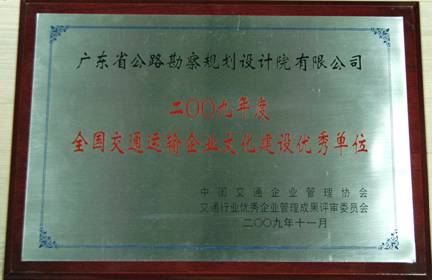 日前,在鄭州召開的第四屆全國交通運(yùn)輸企業(yè)文化建設(shè)論壇上,我公司被授予2009年度“全國交通運(yùn)輸企業(yè)文化建設(shè)優(yōu)秀單位”榮譽(yù)稱號。 此次表彰,由中國交通企業(yè)管理協(xié)會和交通行業(yè)優(yōu)秀企業(yè)管理成果評審委員會發(fā)起和評審,全國共有123個(gè)單位獲獎(jiǎng),其中交通規(guī)劃勘察設(shè)計(jì)單位5家。