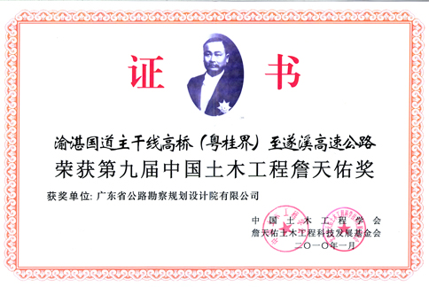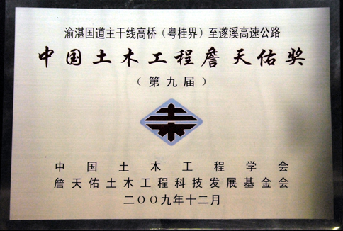 項(xiàng)目榮獲“第九屆中國(guó)土木工程詹天佑獎(jiǎng)”