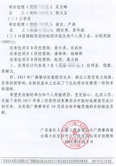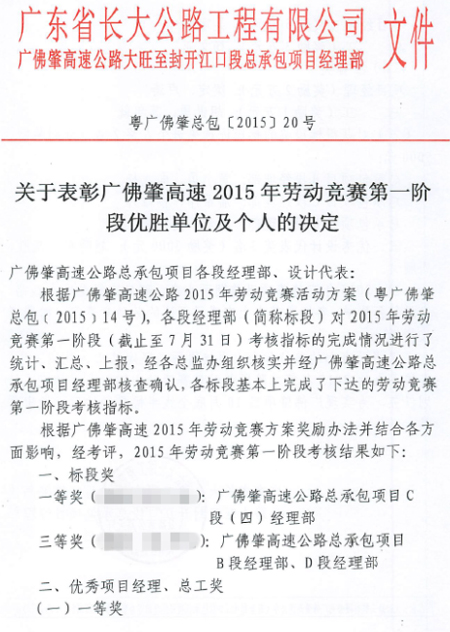 近日,我司巖土勘察分公司駐廣佛肇高速公路肇慶大旺至封開江口段設(shè)計(jì)代表趙明星同志受到廣東省長大公路工程有限公司廣佛肇高速公路大旺至封開江口段總承包項(xiàng)目經(jīng)理部表彰,榮獲廣佛肇高速2015年勞動競賽“優(yōu)秀設(shè)計(jì)代表”稱號。 趙明星同志長期為廣佛肇高速提供高效、優(yōu)質(zhì)的設(shè)計(jì)代表服務(wù),獲得了業(yè)主單位的肯定和表揚(yáng)。為公司樹立了良好的外部形象,贏得了聲譽(yù),特表祝賀。