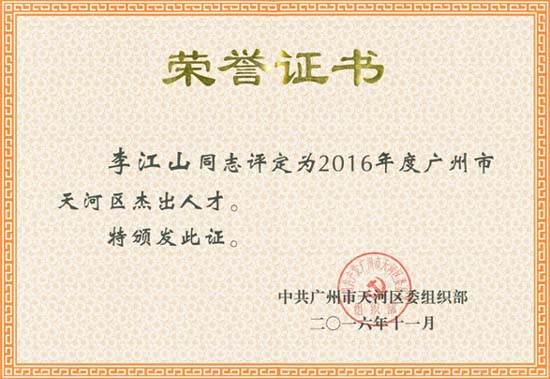 近幾年來(lái),在李江山董事長(zhǎng)的帶領(lǐng)下,公司董事會(huì)團(tuán)結(jié)和帶領(lǐng)經(jīng)營(yíng)班子,堅(jiān)持以改革促發(fā)展,以創(chuàng)新求效益,內(nèi)抓管理,外樹(shù)形象,優(yōu)質(zhì)高效地完成了廣梧、廣賀、揭普、佛開(kāi)高速擴(kuò)建、濟(jì)廣、大廣、江羅、包茂、潮惠、云湛高速、虎門(mén)二橋、江順大橋等國(guó)家級(jí)和省級(jí)重大交通項(xiàng)目的勘察設(shè)計(jì)任務(wù),為廣東乃至全國(guó)的交通事業(yè)發(fā)展做出了突出貢獻(xiàn),公司經(jīng)營(yíng)業(yè)績(jī)和利潤(rùn)水平穩(wěn)步提升,社會(huì)創(chuàng)稅貢獻(xiàn)逐年增長(zhǎng)。為表彰其在公司發(fā)展和利稅創(chuàng)收方面取得的突出成績(jī),經(jīng)中共廣州市天河區(qū)委組織部評(píng)審,李江山董事長(zhǎng)被授予“2016年度廣州市天河區(qū)杰出人才”稱號(hào),這既是對(duì)李江山董事長(zhǎng)個(gè)人的充分肯定,也是天河區(qū)尊重和愛(ài)護(hù)高級(jí)管理人才、實(shí)施"人才興區(qū)"的具體體現(xiàn)。 特此祝賀!