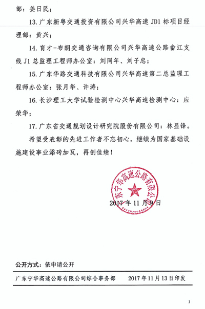 近日,我司第二路橋設(shè)計(jì)分公司林顯鋒受到廣東寧華高速公路有限公司表彰,榮獲興華項(xiàng)目參建單位先進(jìn)工作者稱號,為公司樹立了良好的外部形象,贏得了聲譽(yù),特此報(bào)喜! 興華項(xiàng)目自2015年5月開工建設(shè)以來,獲得廣東省2015年度公路水運(yùn)工程“平安工地”示范項(xiàng)目、兩次廣東省交通運(yùn)輸工程質(zhì)量監(jiān)督站質(zhì)量安全綜合大檢查第四名(2016年度、2017年度)。并于2017年9月28日通車,較計(jì)劃提前三個月。