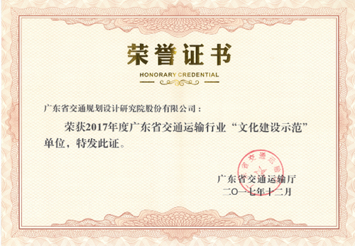 多年來,公司按照省交通運輸廳“用心服務(wù),暢享交通”理念和公司“團隊共進、競爭共贏、創(chuàng)新求精、奉獻求真”的核心價值觀,堅持以人為本、注重參與、創(chuàng)新形式、與時俱進的工作思路,以黨團工會為載體,積極創(chuàng)新、銳意進取,不斷完善文化建設(shè)機制,扎實開展各項文化建設(shè)活動,多次獲評為“全國交通運輸企業(yè)文化建設(shè)卓越單位”、“廣東省交通運輸系統(tǒng)先進職工之家”、2017年公司還榮獲了“廣東省五一勞動獎狀”稱號。