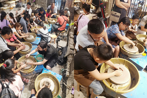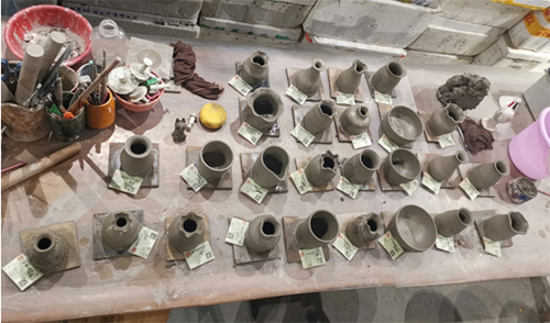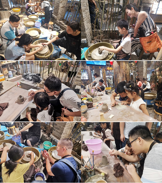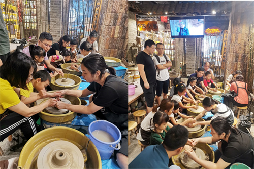 活動現(xiàn)場,各位同事帶著子女,在專業(yè)老師的講解和指導之下,一起拉坯、刻畫,親手制作出獨一無二的陶藝作品。一個個形狀、花紋各異的陶瓷坯件之上,都凝結著一段段獨特的回憶以及一份份珍貴的親子情。