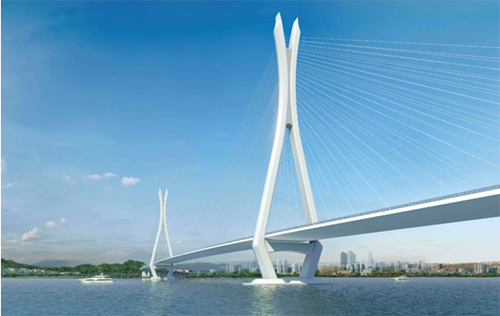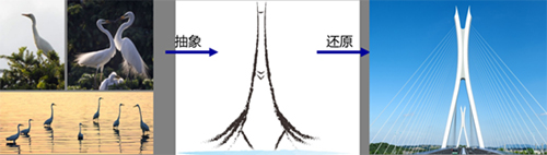 (2)橋塔采用獨創(chuàng)性的白鷺塔方案。創(chuàng)意靈感來源于佛山市白鷺湖風光,以優(yōu)雅對唱的白鷺形象勾勒出橋塔柔和的外形,景觀效果突出,與佛山文化高度契合。