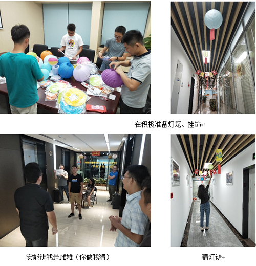 天花板下懸掛了一串串燈籠和燈謎;在辦公區(qū)的4個方位還設置了“月兔蹴鞠”“月兔歸巢”“安能辨我是雌雄”以及指壓板跳繩等游戲區(qū)和兌獎區(qū),吸引大家參與其中。節(jié)日的氣氛洋溢在現(xiàn)場的每個角落。贏取到游戲中的精美禮品的大伙兒滿載而歸,在歡聲笑語中提前度過了一個快樂而有意義的中秋佳節(jié)。