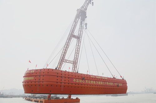 東江南支流港灣大橋主墩承臺(tái)防撞套箱,采用固定式釋能附體型結(jié)構(gòu)。鋼套箱長73.12米、寬23.8米、高9.5米,重量約1100噸,正常使用壽命為30年。本次下放的鋼套箱為主橋25#墩。大橋所在的東莞水道為5000噸級海輪航道,橋位區(qū)域河流航道繁忙,船舶流量約每天400艘次,鋼套箱下放施工難度大,通航安全風(fēng)險(xiǎn)極高。