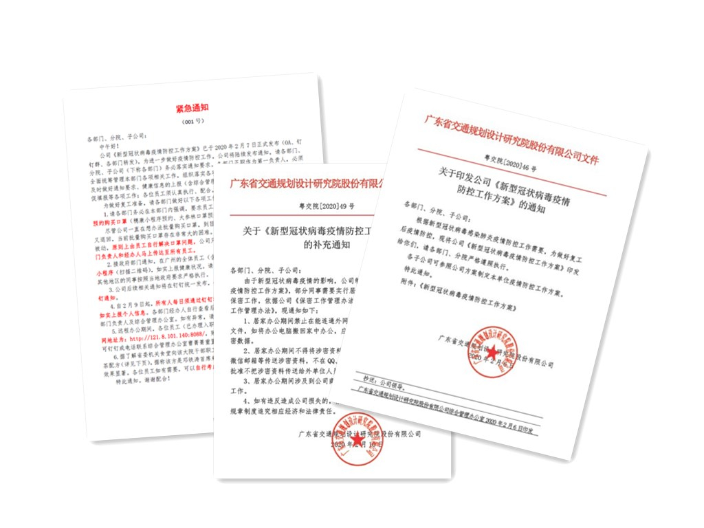疫情當前,公司積極響應黨中央和各級政府號召,始終堅持疫情防控與生產(chǎn)經(jīng)營兩不誤,每一位廣東交通院人將始終以飽滿的精神狀態(tài)、正確的防疫意識、始終如一的專業(yè)素養(yǎng)和奉獻精神,全力戰(zhàn)“疫”,持續(xù)為顧客提供優(yōu)質(zhì)高效服務(wù)。