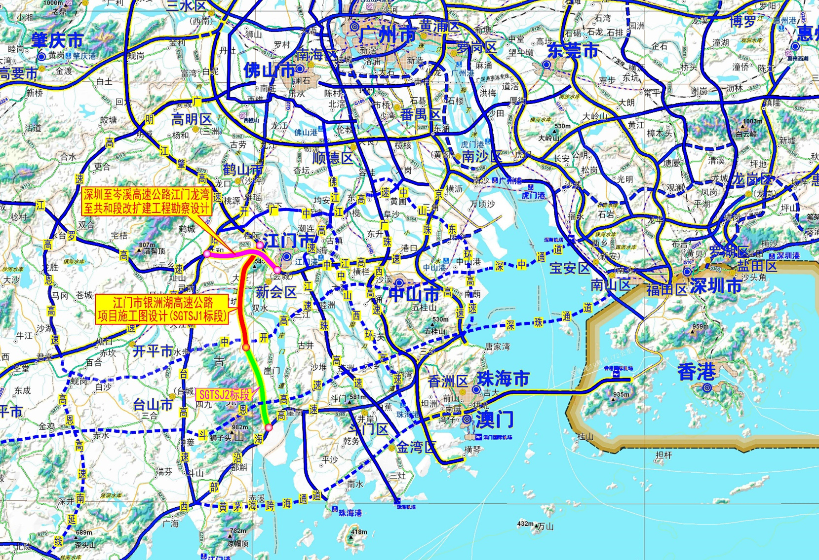 江門市銀洲湖高速公路項(xiàng)目路線起于蓬江區(qū)棠下鎮(zhèn),接珠三角環(huán)線高速公路,終點(diǎn)位于新會區(qū)崖門鎮(zhèn)(接西部沿海高速公路),長約53.8km,采用雙向六車道高速公路標(biāo)準(zhǔn),設(shè)計速度120km/h,路基寬度34.5m。我司承擔(dān)的是銀洲湖高速SGTSJ1標(biāo)段(總體標(biāo))的土建勘察設(shè)計和總體協(xié)調(diào)任務(wù)。該標(biāo)段全長約31.3km,總投資約82億元。