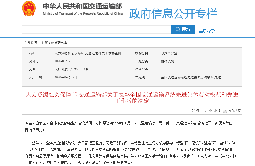 為表彰先進(jìn)、樹立典型,進(jìn)一步增強(qiáng)全國交通運(yùn)輸系統(tǒng)廣大干部職工的榮譽(yù)感和干事?lián)?dāng)?shù)墓ぷ鳠崆?,加快建設(shè)交通強(qiáng)國,人力資源和社會(huì)保障部、交通運(yùn)輸部組織開展了全國交通運(yùn)輸系統(tǒng)先進(jìn)集體評選表彰活動(dòng)。